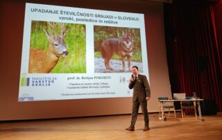 Dr. Boštjan Pokorny, predsednik Strokovno-znanstvenega sveta LZS je v zbranim predstavil tematiko upadanja številčnosti srnjadi v Sloveniji, ki je zanimiva ne samo za lovce ampak za širšo javnost, saj se s prostoživečimi živalskimi vrstami srečujemo na Pivškem vsi prebivalci, bodisi na vsakdanjih sprehodih ali v svojem delovnem in kmečkem okolju. Velika množica lovcev od vsepovsod je zbrano prisluhnila predavanju, ki ga je prof. Pokorny s posluhom za različen odnos do problematike povezoval izjemno razumljivo, s poudarki na dojemanje stanja in odnosa do srnjadi v sožitju z drugimi prostoživečimi živalskimi vrstami v različnih okoljih slovenskega podeželja. Razlike so velike, prav tako odnos do sobivanja. Ob koncu so lovci izražali svoje mnenje ter postavljali vprašanja.